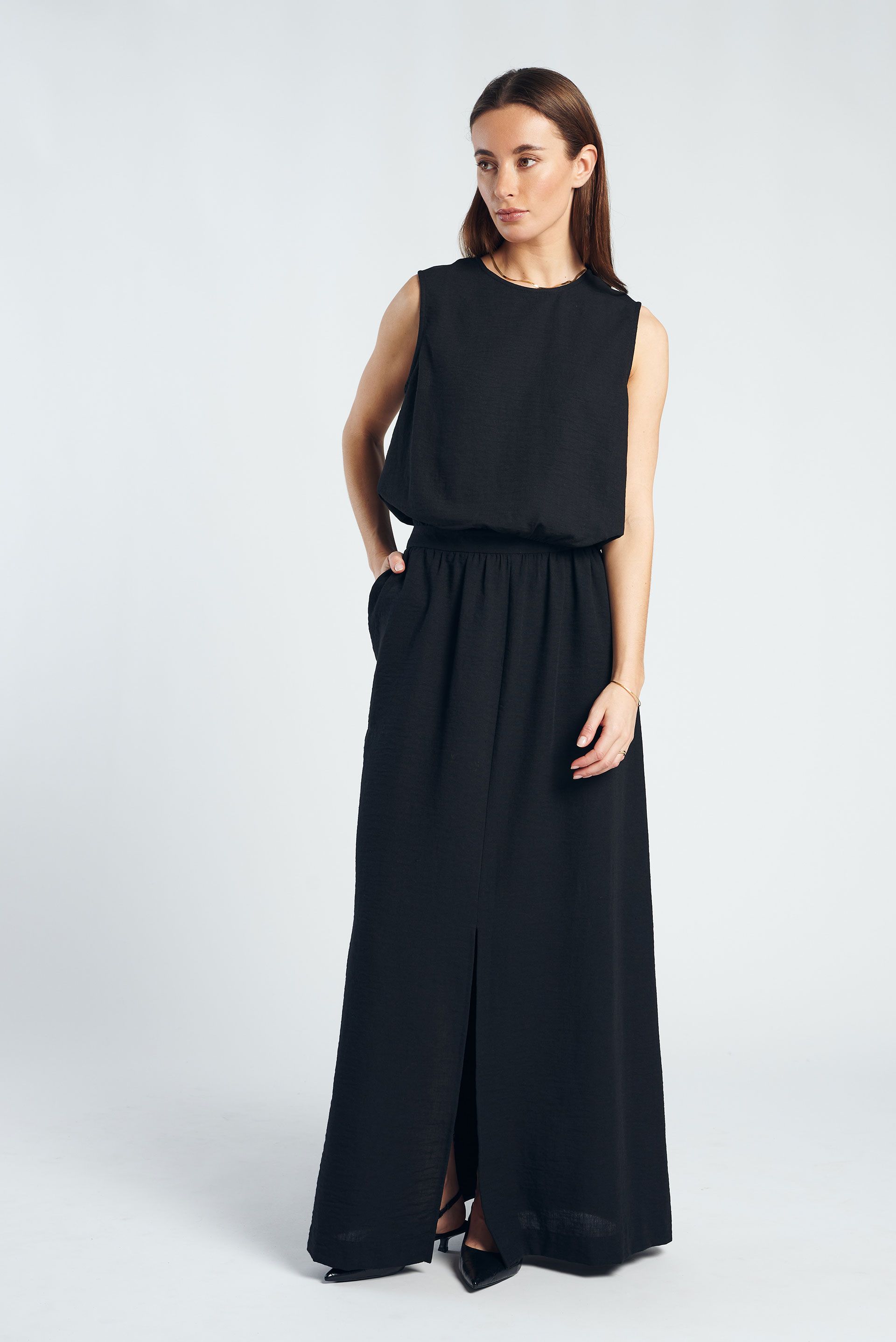 De Holly skirt is een elegante maxi rok met een krachtige, tijdloze uitstraling. De diepe zwarte kleur geeft de rok een moderne en verfijnde look. Gemaakt van een luchtige, soepelvallende kwaliteit die mooi valt en subtiel meebeweegt bij elke stap. De lange, vloeiende lijn zorgt voor een vrouwelijk silhouet met een minimalistische touch.