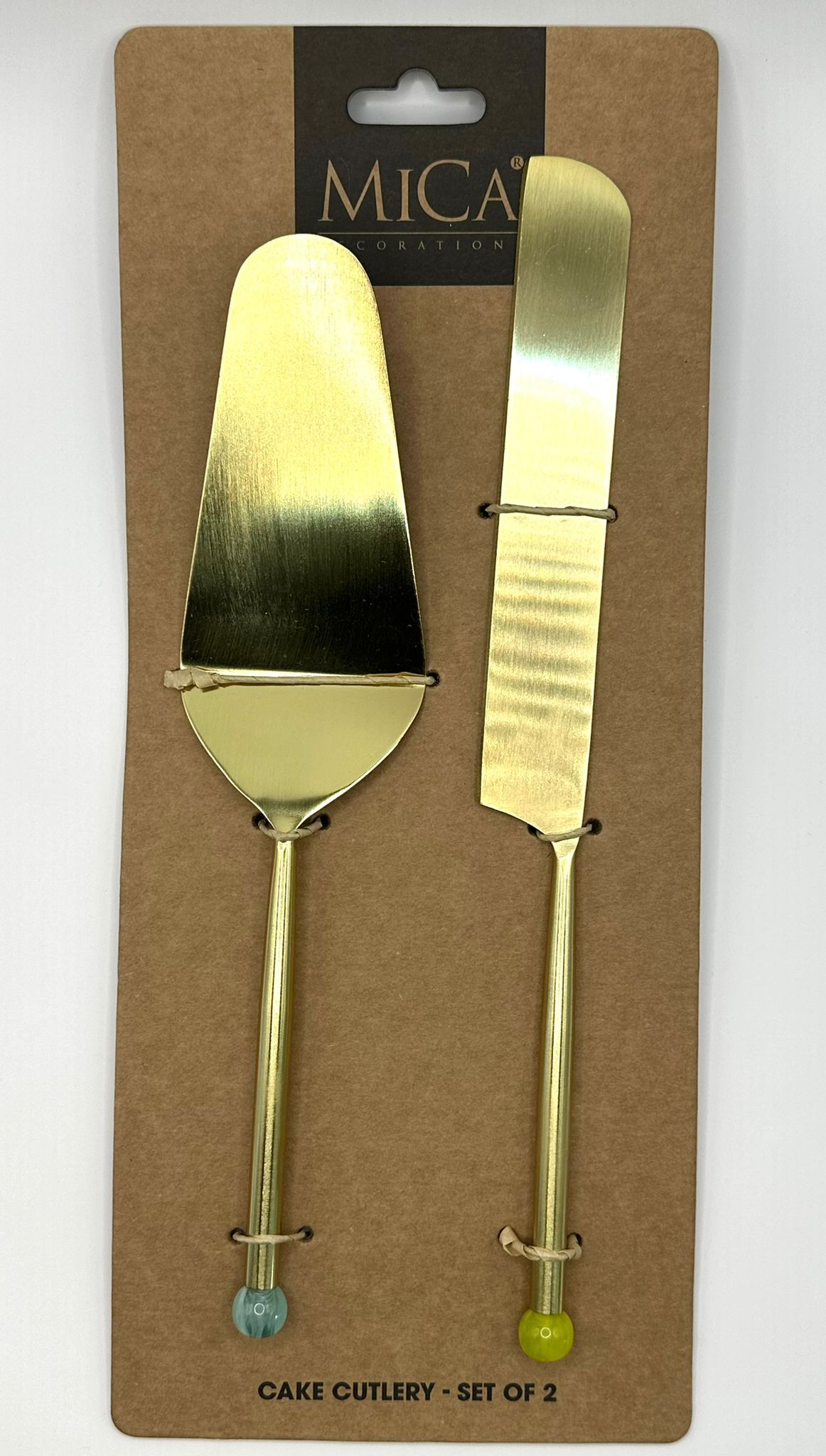 Goudkleurig taartmes en taartschep van roestvrij staal. Een elegante set van 2 stuks die elke taartmoment een feestelijk tintje geeft – perfect voor speciale gelegenheden.