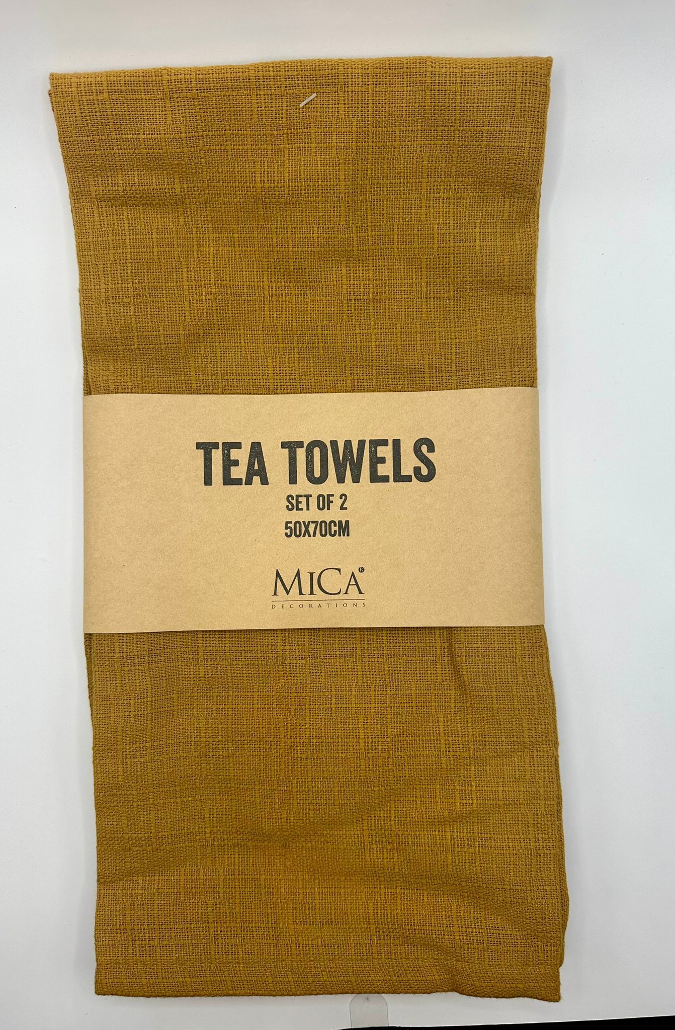 Geef je keuken een frisse en stijlvolle uitstraling met deze theedoeken van in mooi oker geel. Ze zijn ideaal voor tijdens het koken en afwassen, terwijl het zachte oker geel je keuken direct een warme en moderne sfeer geeft.